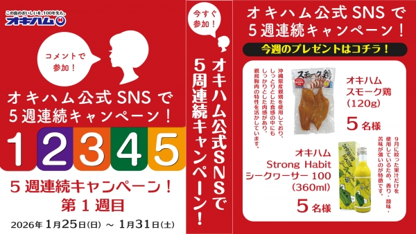 ▼「オキハム公式SNSで5週連続キャンペーン」第1週目のプレゼントはこちら!