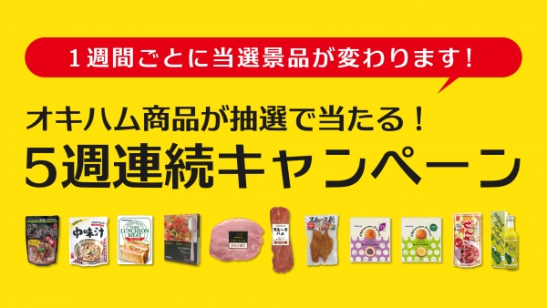 沖縄ハム総合食品株式会社は、日頃よりご愛顧いただいている皆さまへの感謝の気持ちを込めて、下記のとおり「オキハム公式SNSで5週連続キャンペーン」を実施いたします。