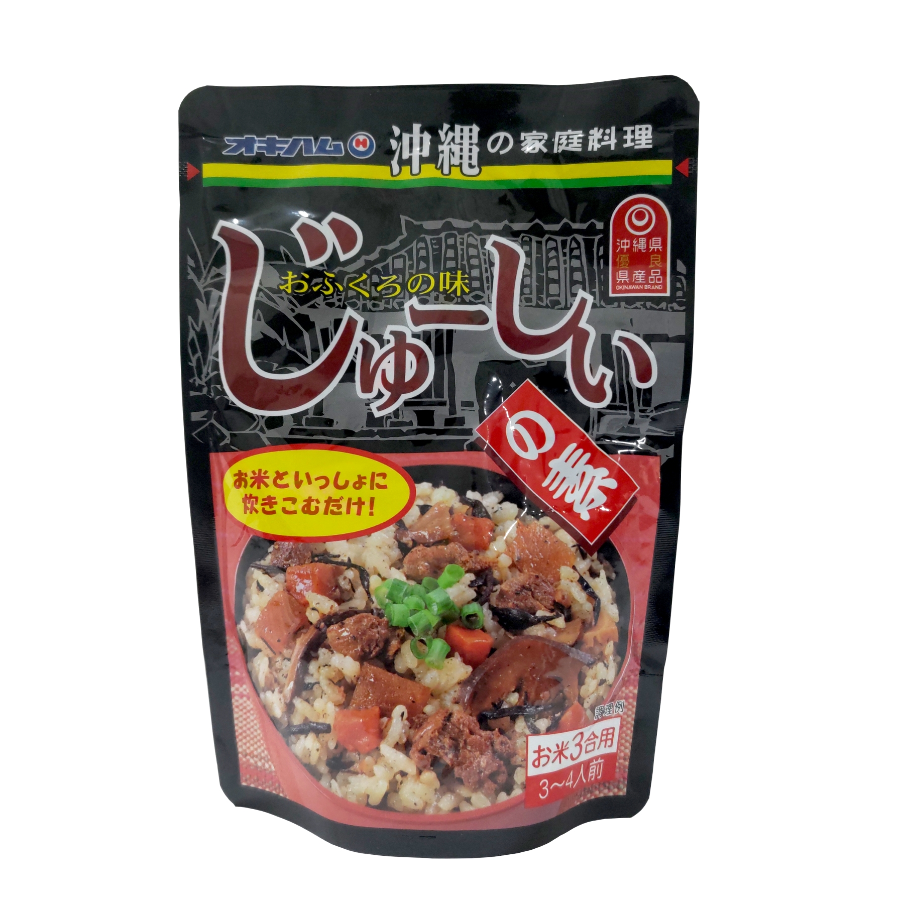 野菜や豚肉が入った、沖縄風炊き込みご飯の素です。お米3合と一緒に炊くだけで手軽に美味しい沖縄の味がお楽しみ頂けます。